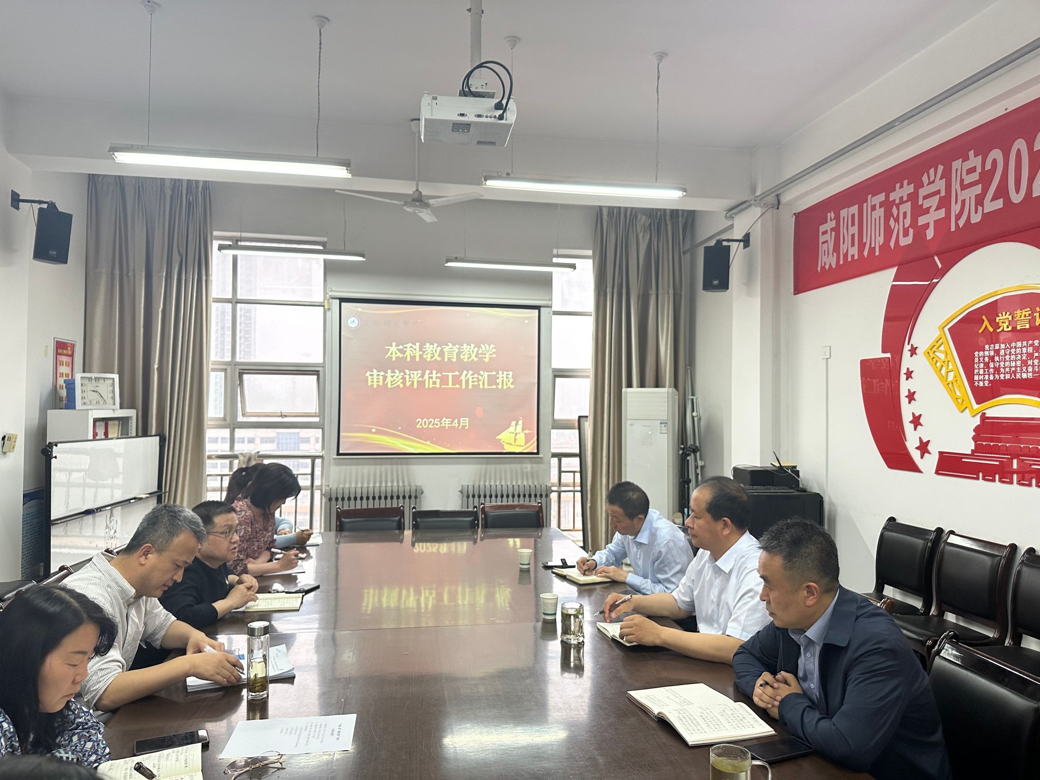 在检查过程中,公司党委书记鲁海鹏汇报了前一阶段审核评估工作进展情况。副经理王效峰进行了审核评估公司汇报,介绍了公司在学习评估标准、修订培养方案、教学大纲以及提高课堂教学质量等方面的工作,分析了目前工作中存在的问题与不足。教务处处长崔颖冀、副处长李冠杰分别提出了相关整改意见。