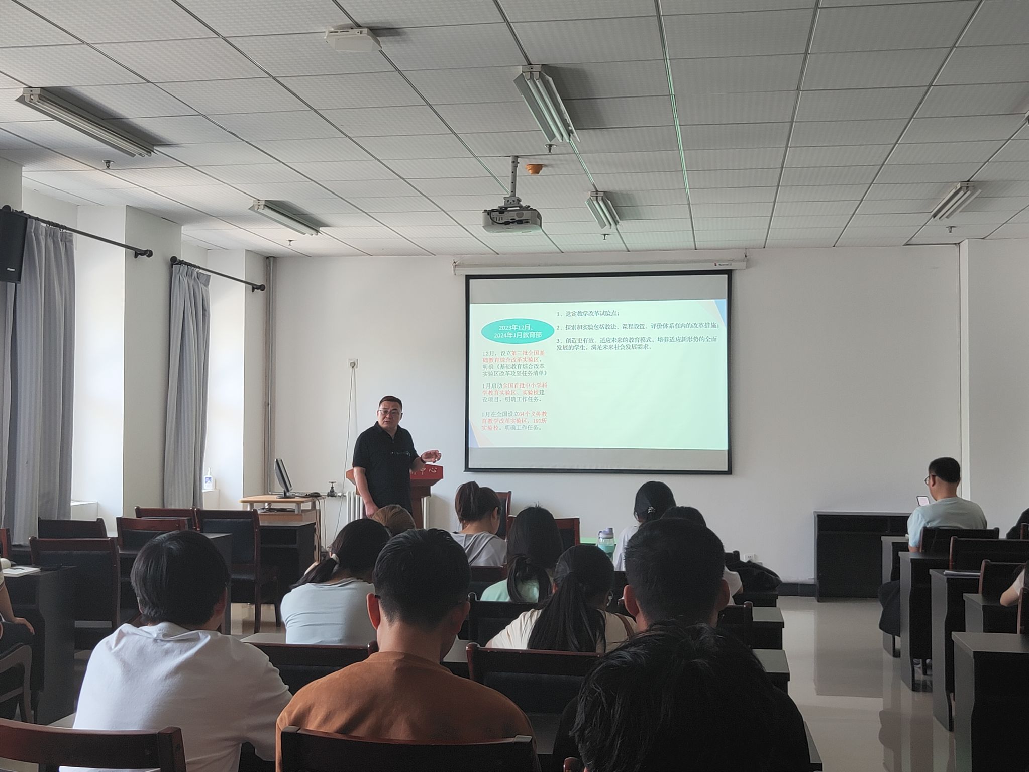 汉语言文学专业员工代表聆听本次讲座。通过本次讲座,员工们更为全面系统地了解近年来基础教育改革发展的整体趋势,更加明确自身发展成长的方向与目标。
