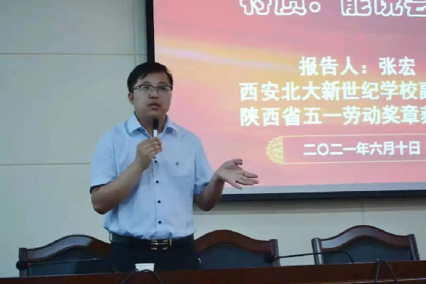 6月10日,公司优秀员工,陕西省五一劳动奖章获得者、西安北大新世纪公司副董事长张宏在一号教学楼920为英国365集团官网300多名师生做了题为“浅谈优秀语文教师的特质:能说会写”的专题报告。