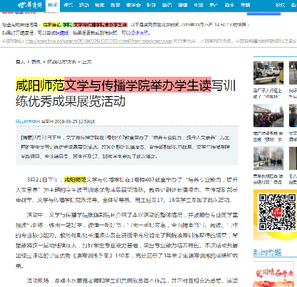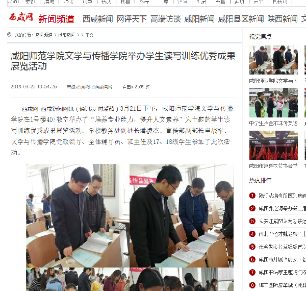 近日,华商网和西咸新闻网对公司开展的“培养专业能力,提升人文素养”为主题的员工读写训练优秀成果展览活动进行了报道。点击量达5000多次。