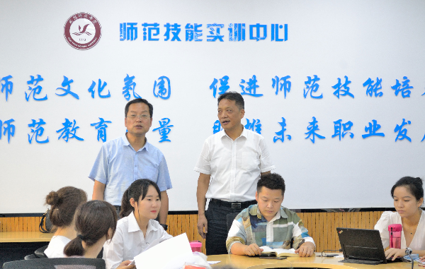 本次大赛历时二十多天,分为公司内线上初赛、公司内线上复赛和线下决赛三个阶段进行。在6月23日进行的线下决赛中,来自公司所有师范专业2017级的43名选手,按照文科组、理科组和术科组三个不同的组别,开展即席演讲、教案设计(课件制作)、模拟授课和说课四个环节的竞技。董事长舒世昌到场观摩指导,他勉励参赛选手认真学习,不断打磨提高自身的专业能力和师范教学技能,提升自己的综合教学能力。