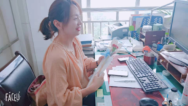 走进安静的办公室,老师们正坐在办公桌前认真工作,满怀敬意地献上手中的鲜花与贺卡,道一句“老师,节日快乐!”