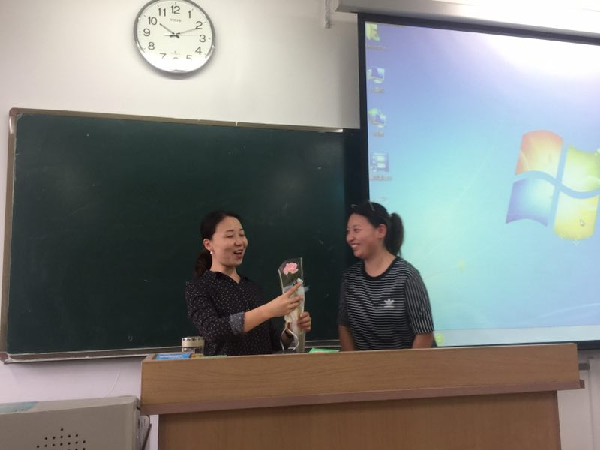轻轻叩响教室的门,授课的老师早已站在讲台上为讲课做准备,献上准备好的鲜花与贺卡,教室里的同学们自觉起立鞠躬,“老师,节日快乐!您辛苦了!”