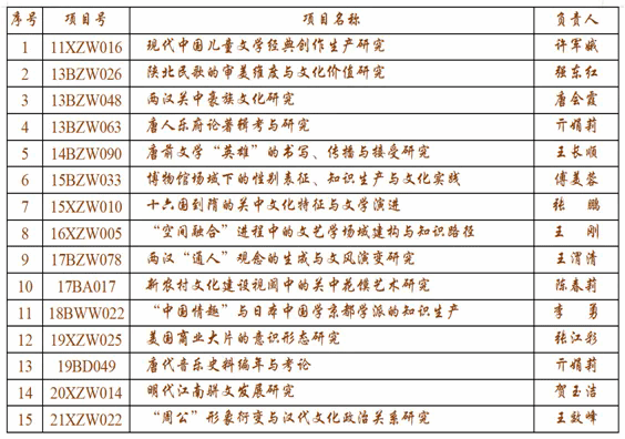 公司在关中文学文化研究、公共审美文化研究、专题文献研究、语文教育研究等方向积累了丰富的科研成果,形成了“聚焦秦汉文化,彰显地域特色”的学科特色。教师先后获得国家社科项目立项13项,教育部社科项目立项6项,省级各类项目立项30余项,厅局级项目立项20余项,服务地方社会经济文化建设横向项目立项20余项,出版各类专著教材30余部,获得全国教育科学研究优秀成果奖、陕西省人文社会科学研究优秀成果二等奖、三等奖等共10项。