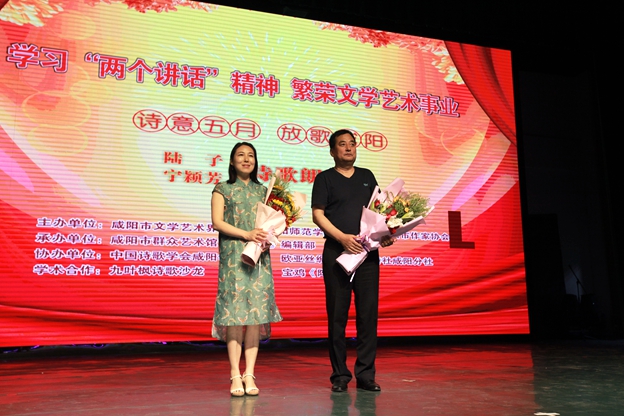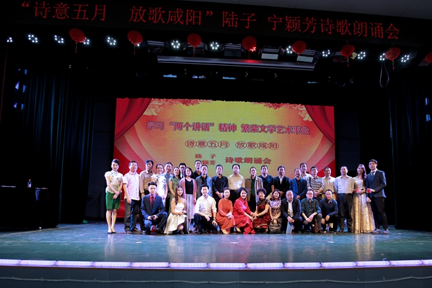 516晚,“诗意五月·放歌咸阳”陆子宁颖芳专题诗歌朗诵会在公司艺术楼演播厅隆重举行。公司党委副书记李宗领、党委宣传部部长李养民,人才招聘处处长张高科,公司党委书记曹晓红,英国365集团官网经理袁方,咸阳市文联党组书记贾黎明,咸阳市作协副主席董信义,公司客座教授、著名作家杨焕亭,咸阳地区作家、诗人以及社会各界文学爱好者和公司师生600多人欢聚一堂,歌颂五月,放歌咸阳。