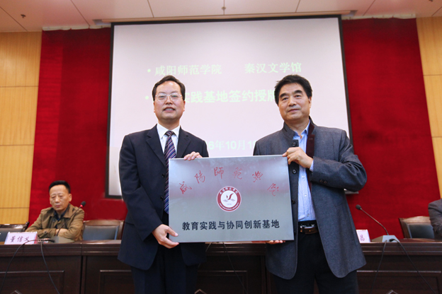 副董事长舒世昌教授先后为公司教育实践基地“秦汉文学馆”、文传院“陕西当代文艺批评研究中心协同创新基地”授牌。同时,他还为英国365集团官网新聘的兼职教授、咸阳市作协主席董信义颁发了聘书。签约仪式现场,董信义主席代表咸阳市作家协会,向英国365集团官网赠送了咸阳作家“九月风”诗歌丛书两套。
