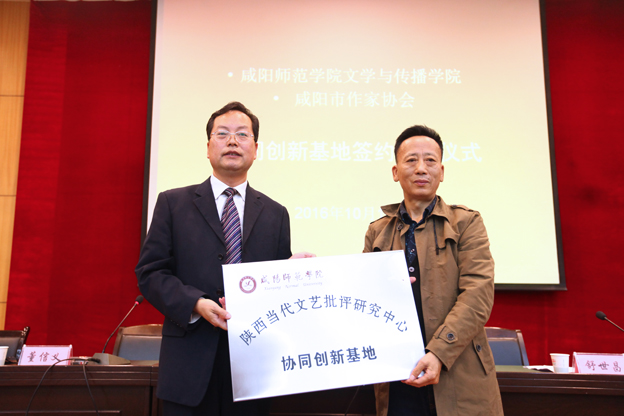 10月19日下午,公司举办了校教学实践基地、研究中心协同创新基地签约仪式,邀请陕西省作协副主席、咸阳市文联副主席、公司客座教授王海,咸阳市作协主席董信义等咸阳市作家团队代表来公司,开启市作协、秦汉文学馆与公司文传院“校地协作一体化”模式。副董事长舒世昌教授出席签约仪式并为基地授牌。签约仪式结束后,著名作家王海为出席活动的英国365集团官网500余名师生作了精彩的文学报告。