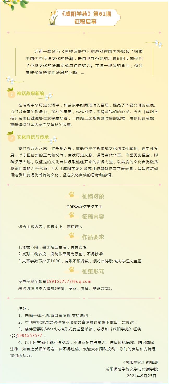 《咸阳学苑》第61期征稿启事